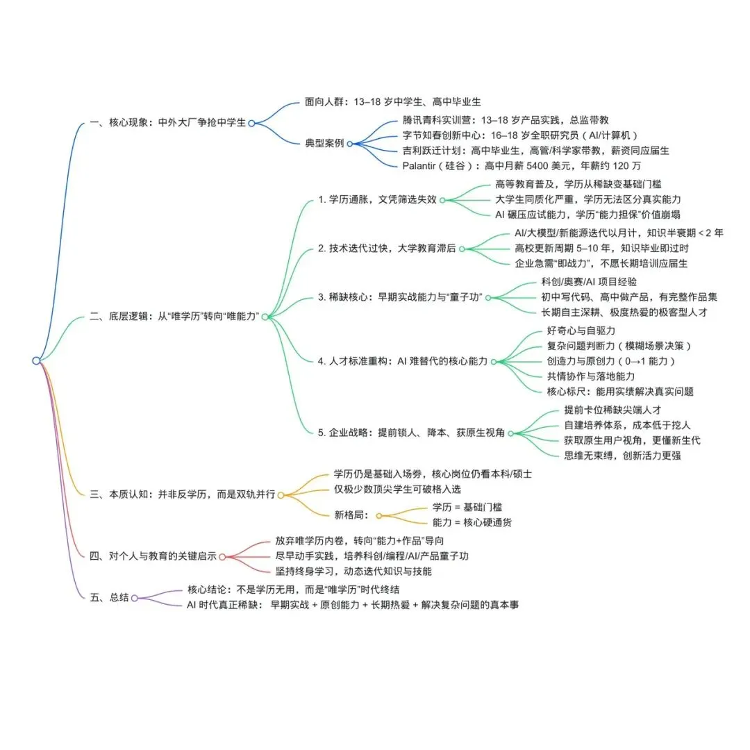 大厂抢中学生,不是学历没用,是“唯学历”彻底失效;AI 时代,真正值钱的是:早期实战、原创能力、长期热爱、能解决复杂问题的“真本事”。