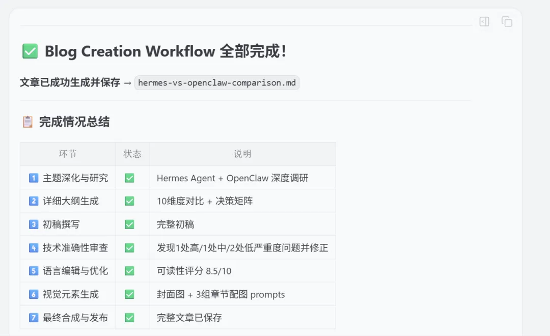 如果你按照本文的步骤实操,应该能够在半天内跑通一条基础的内容创作流水线。研究Agent负责素材搜集,提纲Agent负责初稿大纲生成,写作Agent负责初稿生成,编辑Agent负责润色,终审Agent负责质量把控——每个环节各司其职,通过Orchestrator串联成一条高效的内容生产链路。在后续迭代中,你可以基于生产数据持续优化每个Agent的配置,逐步提升流水线的能力边界。