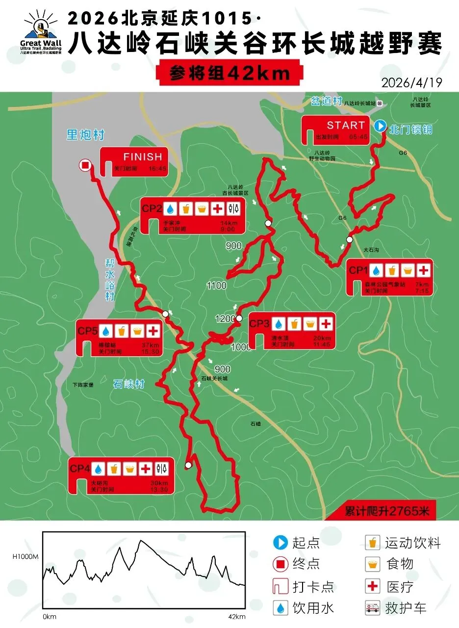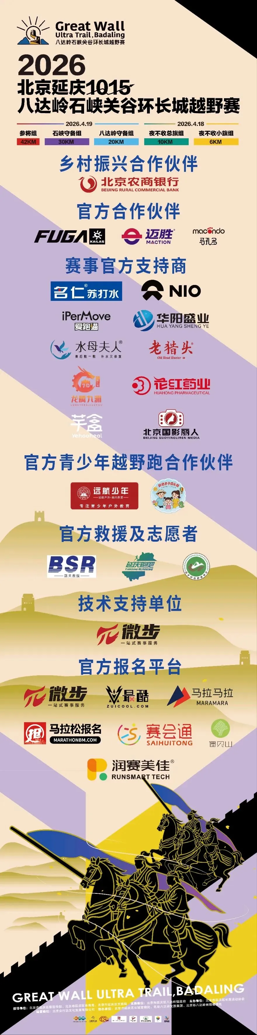 感谢您参与 2026 八达岭石峡关谷环长城越野赛!为方便您熟悉赛道、科学备赛、安全完赛,现将本次赛事42 公里参将组官方赛道路书正式发布。路书已对全程路况、爬升、补给点、关键节点与安全注意事项进行详细说明,请您认真阅读、提前规划,预祝各位在长城脚下从容驰骋、圆满完赛!