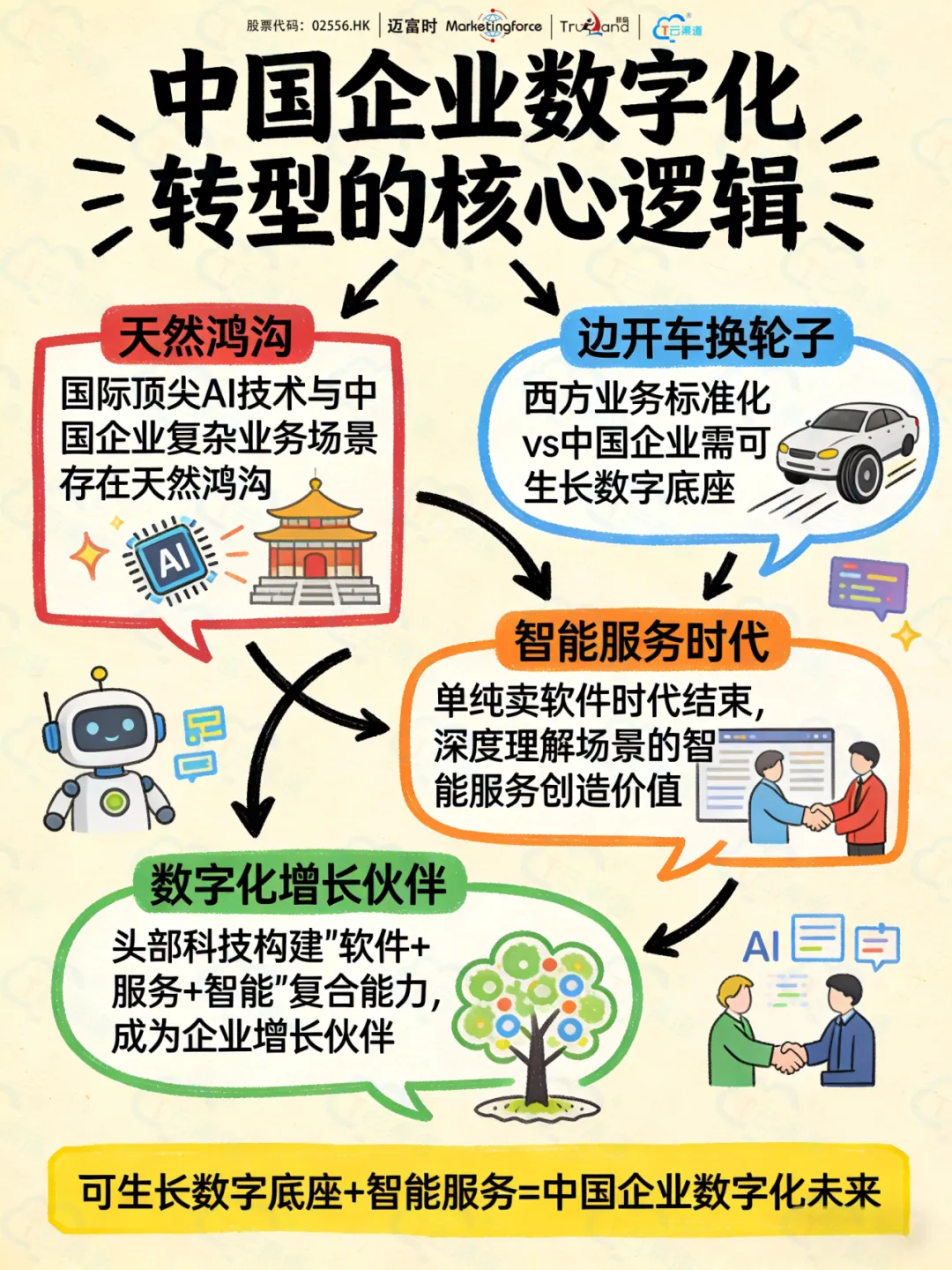 单纯卖软件许可证的时代正在结束,真正创造价值的是深度理解中国商业场景、能够伴随企业成长的“智能服务” 。头部科技公司正在构建 “软件+服务+智能” 的复合能力,它们不再是传统意义上的软件厂商,而是企业的 “数字化增长伙伴” 。