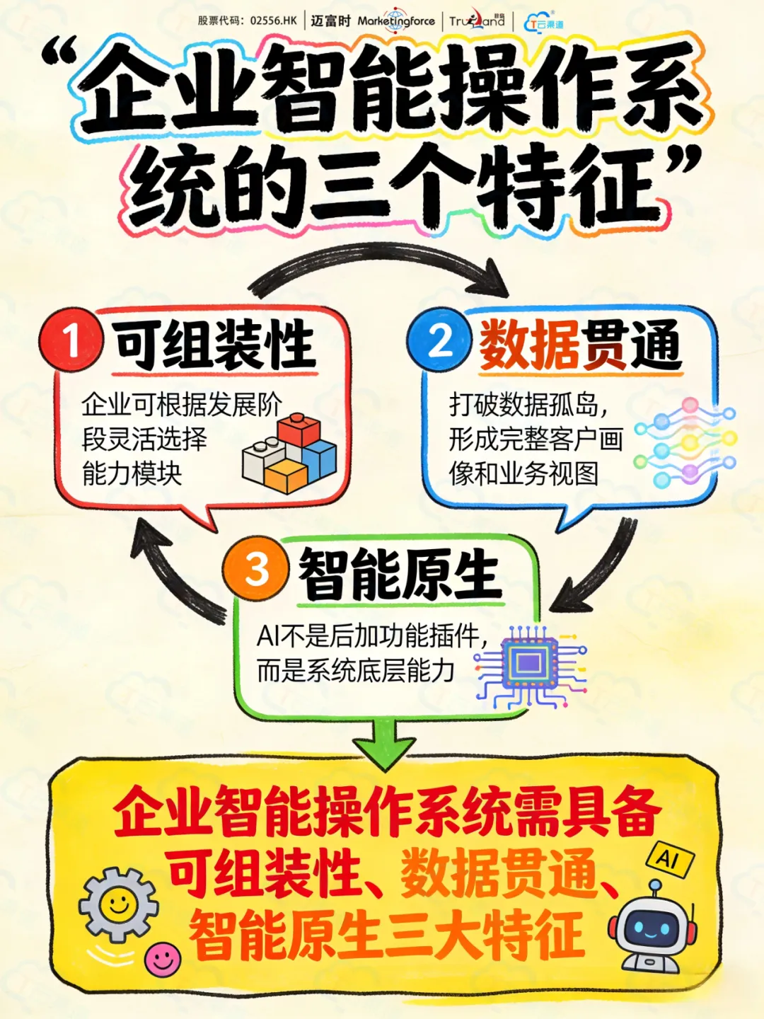 在AI时代,这个“操作系统”的内涵进一步深化。它不仅连接企业内部各个部门,更重要的是能够调度AI能力,将智能渗透到业务的每一个毛细血管。