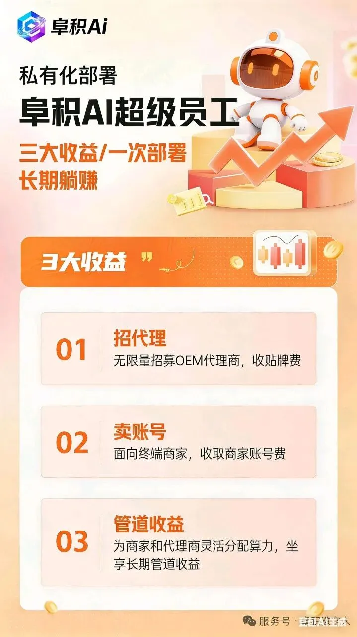 与普通 OEM 代理相比,阜积 AI 超级员工的私有化部署优势显著。其配备具备 SaaS 平台最高权限的超级管理后台,高效专业特质尽显,为用户带来卓越体验。可无上限开通OEM代理商与商家账号,能依据需求灵活自定义使用时长与卡类套餐,为用户提供更贴合实际的服务选择,满足多样化业务需求。如此,能切实为企业量身打造专属的 AI 营销商业生态,开启全新商业格局。企业购买后,可尊享 1 年内免费升级服务。专属服务群全程护佑,售后工程师提供 1V1 技术支持,全方位消解企业顾虑,让企业畅享无忧体验。