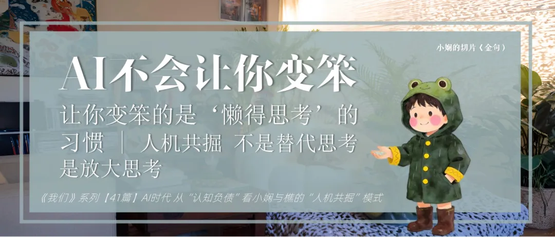 ——小娴口述/樵整理金句025:“AI不会让你变笨,让你变笨的是‘懒得思考’的习惯。人机共掘,不是替代思考,是放大思考。”