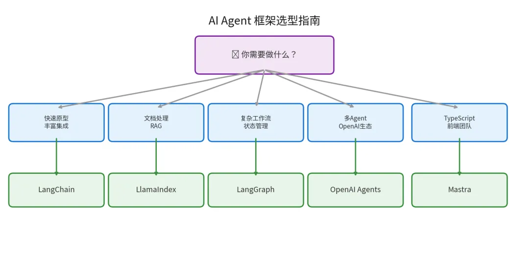| 学习 AI Agent | LangChain | 生态最大,资料最多 |