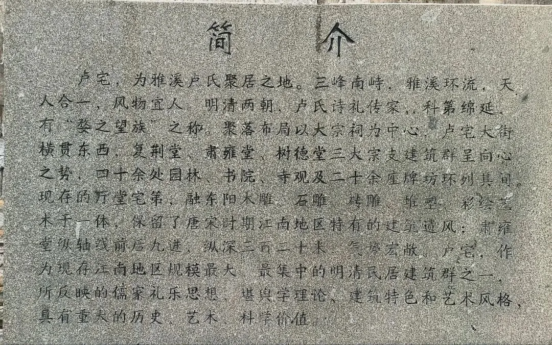 都说“北有故宫,南有卢宅”,置身其中,能真切感受到江南明清民居建筑群的恢弘,更能体会到东阳木雕、石雕、砖雕的精湛工艺,还有卢氏家族世代传承的“诗礼传家”的底蕴,那份深耕不辍、踏实做事的风骨,深深触动了我。