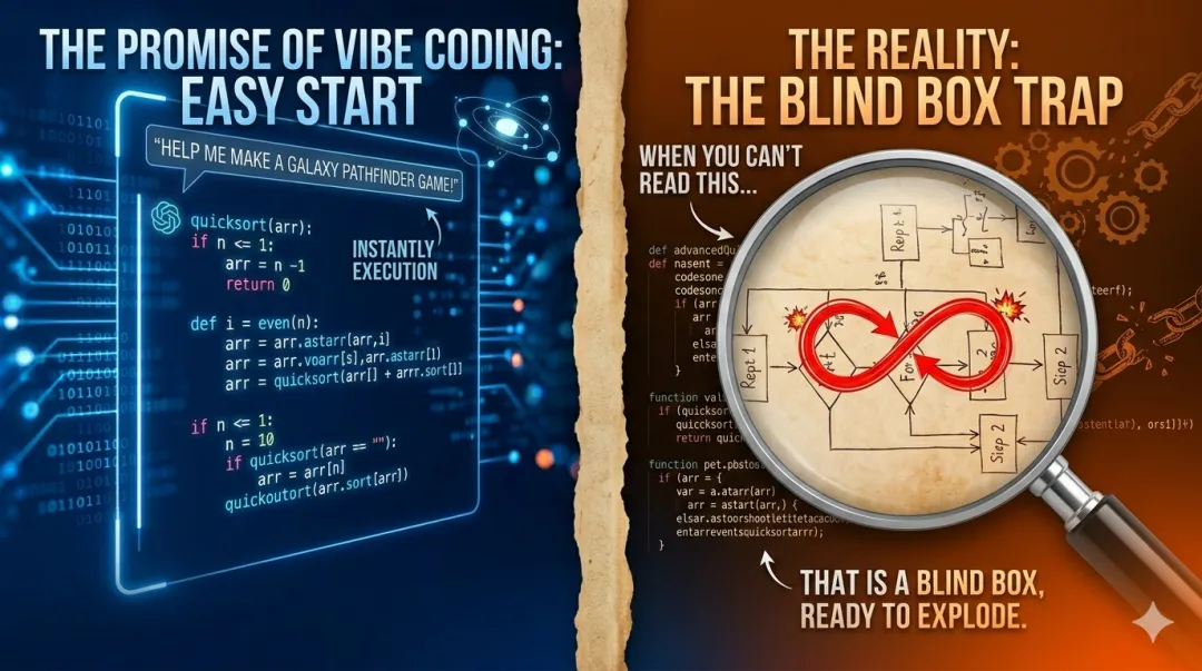 Vibe Coding 是起跑的助推器,信息学是持续攀登的肌肉。 两者不矛盾,但不能只有前者没有后者。