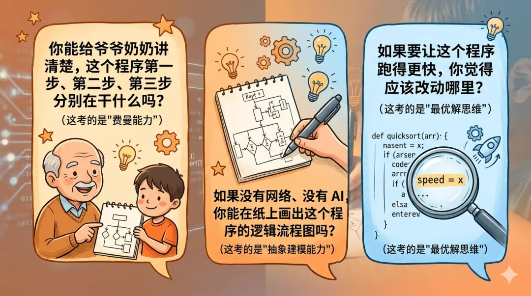家长们的担忧从这里来:既然 AI 都能写代码了,孩子花那么多时间学编程、学信息学,到底值不值?