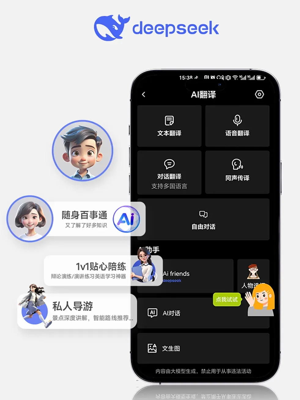 外加Deepseek支持,你说一句就能:查资料、做规划、写文案、生图片…随身“AI助手”!
