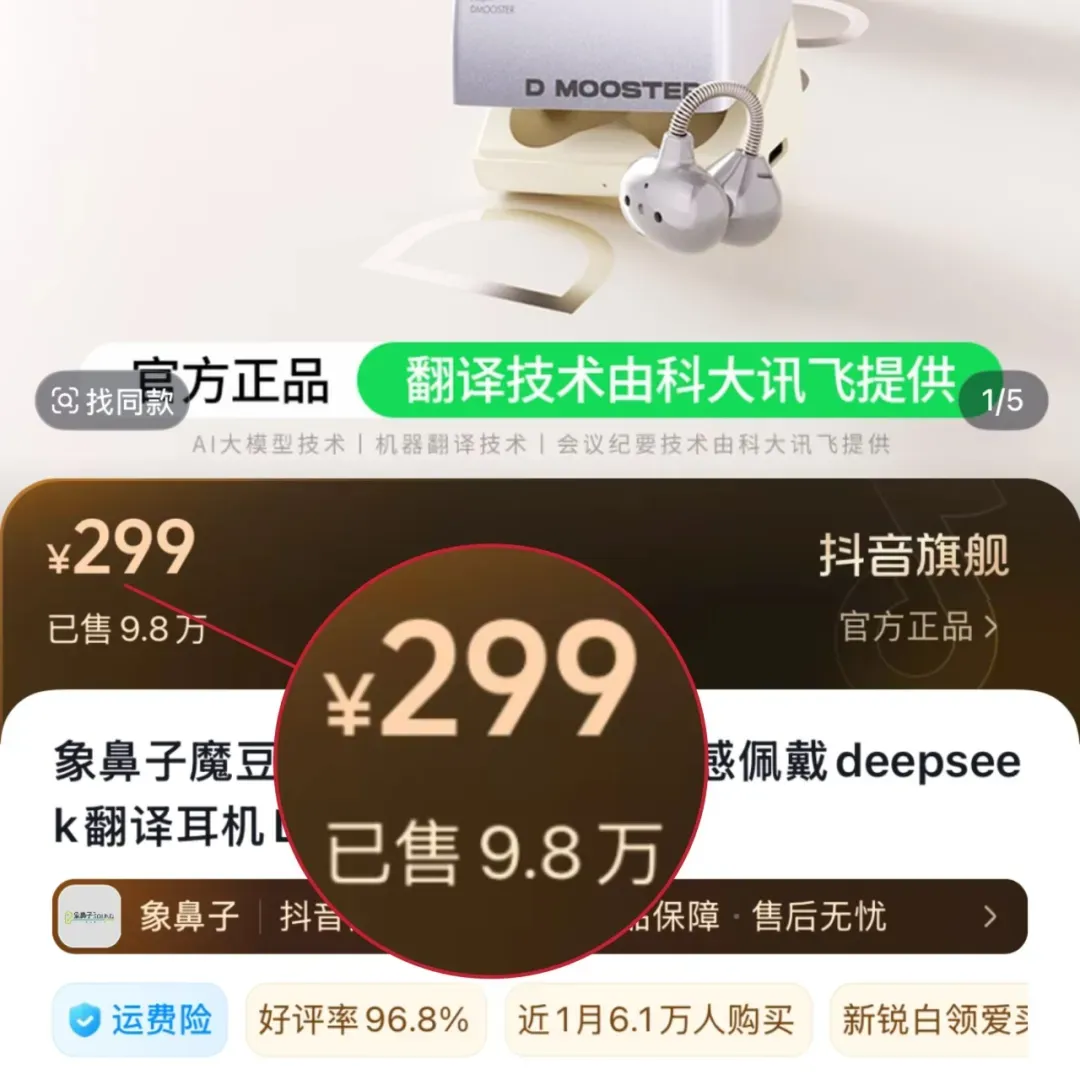 这款耳机某音299,月销9w+