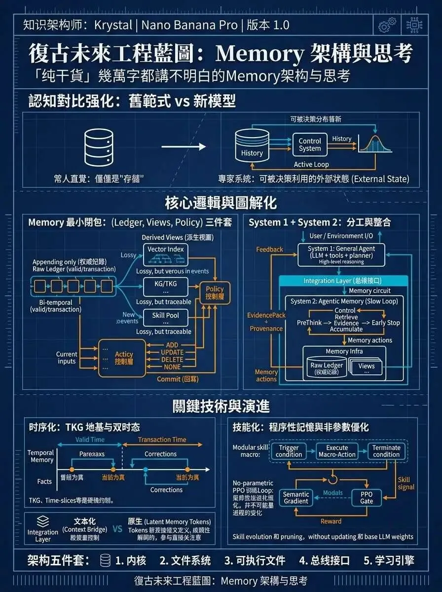 摘要:Memory 不是简单的“历史存储”,而是一个以“权威账本、派生视图、控制策略”为核心、可观测且可进化的“外部状态机”系统。