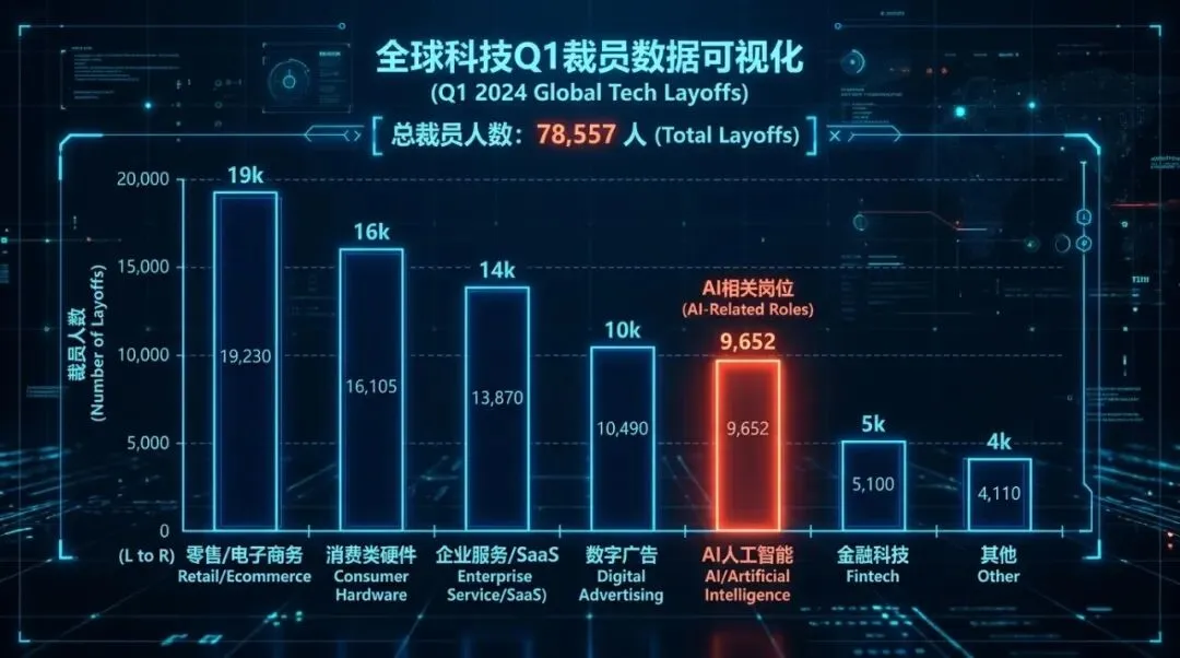 2026年第一季度,全球科技行业裁员78557人,其中约47.9%——近38000人——直接归因于AI技术的实施与工作流程自动化。