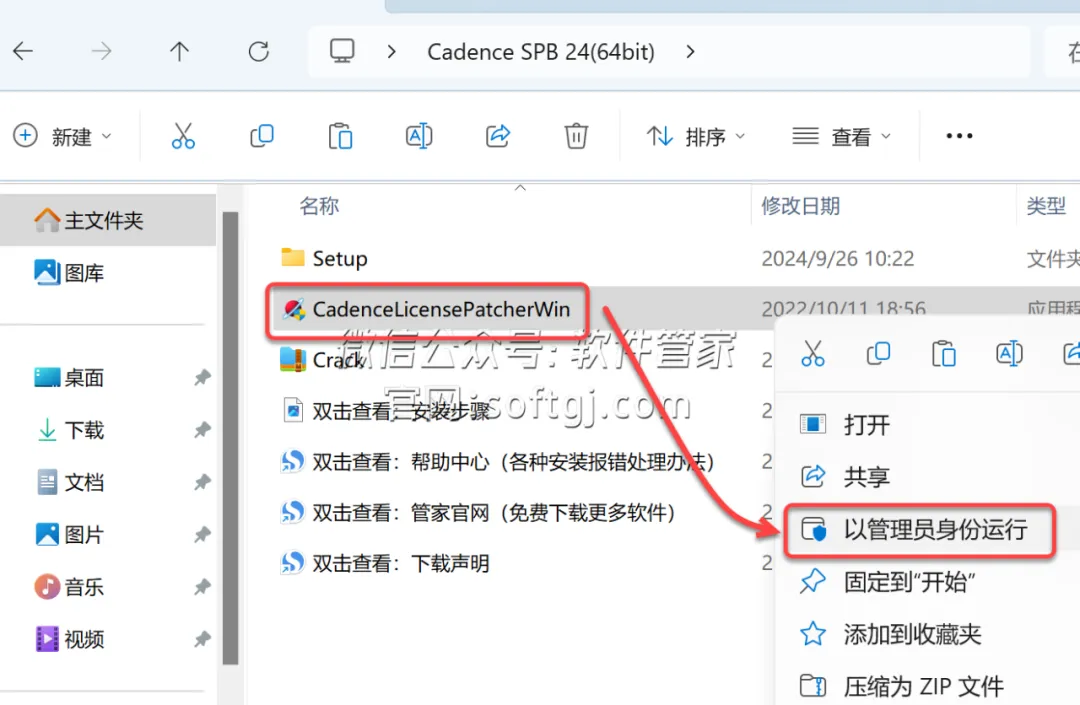 11.鼠标右击解压出来的【CadenceLicensePatherWin】选择【以管理员身份运行】。