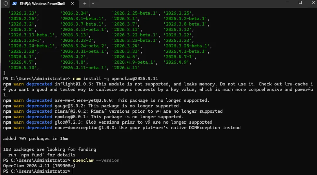 npm install -g openclaw@2026.4.11