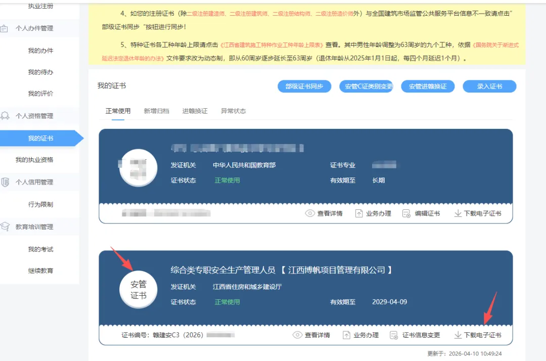🎯江西安全员证书下载流程:1.打开江西住建云--登录账户,自己报名的时候都有注册账号