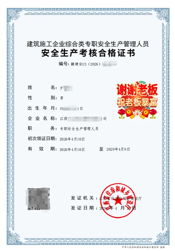 🌻江西安全员C1C2C3都可以报考,很靠谱哟,人去参加考试一个小时搞定,不需要刷题背题,下证即可全国调转请看真实案例: