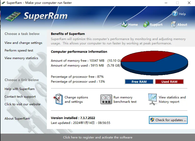 SuperRam可在后台自动清理RAM中的无用临时文件与数据,释放内存资源提升系统性能,还能在系统资源不足时自动优化。