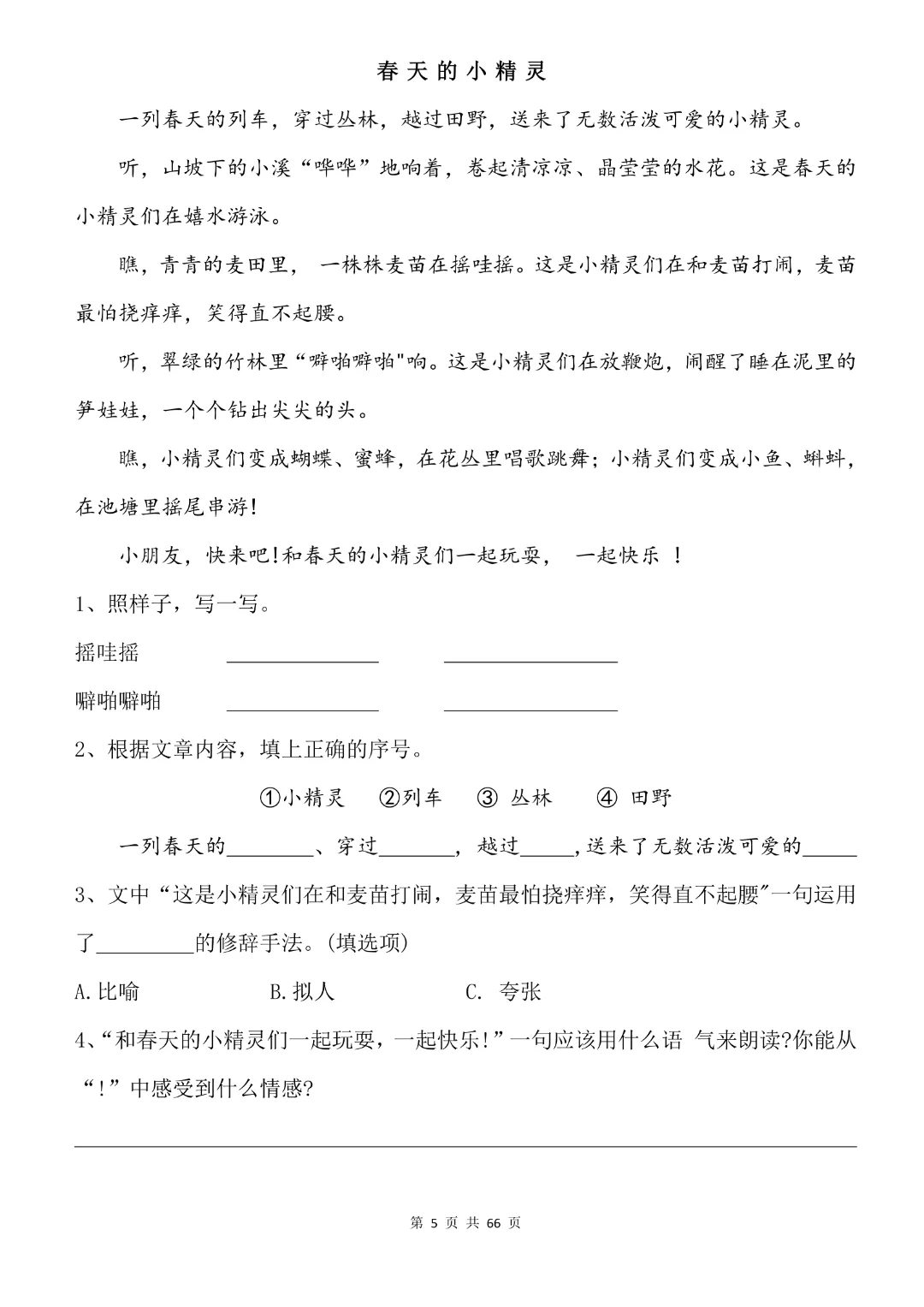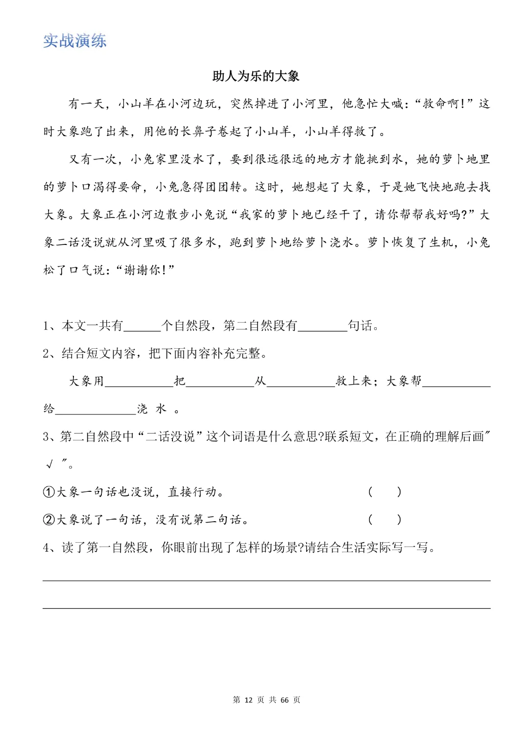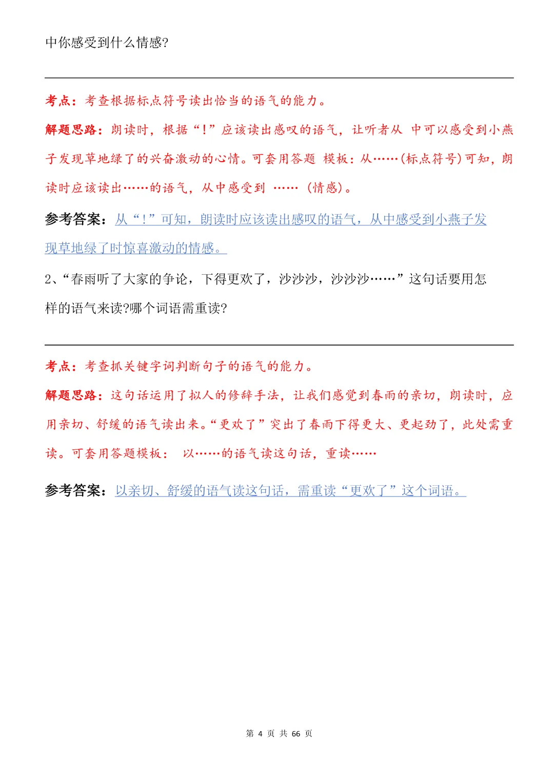 今天给家长们分享的是:二年级下册语文人教版《阅读理解与答题模板17大单元考点》| 完整高清电子版可打印