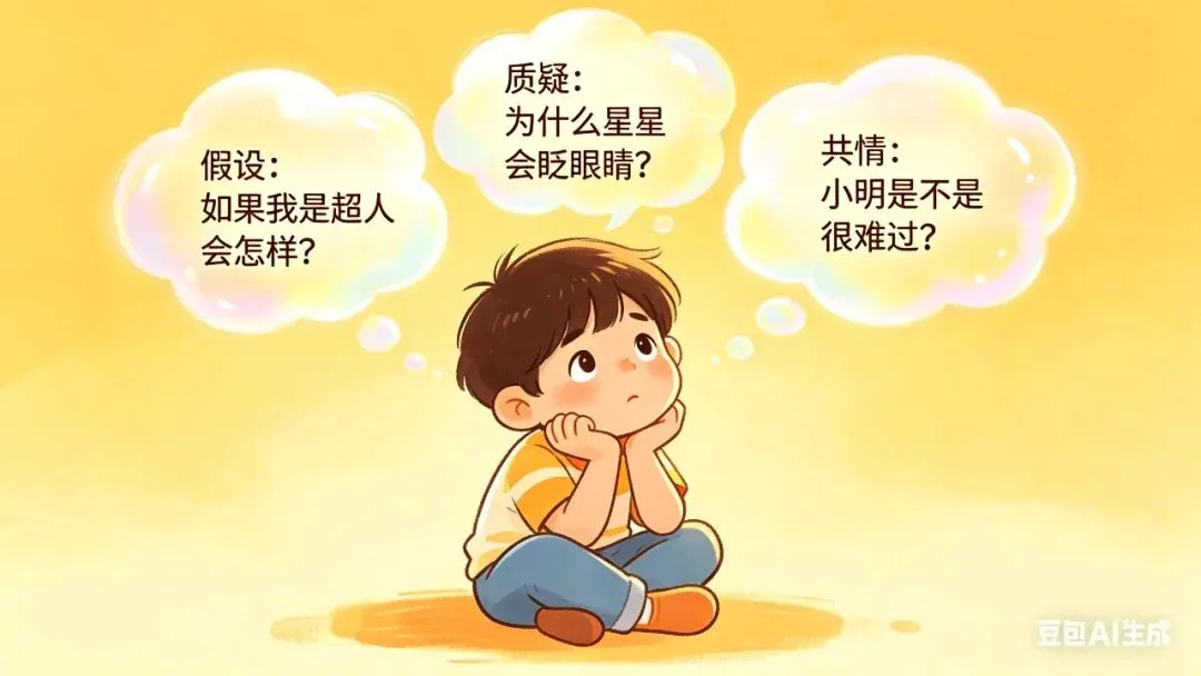 - 共情式提问:提升孩子的情商,比如“如果是你,你会怎么想?”