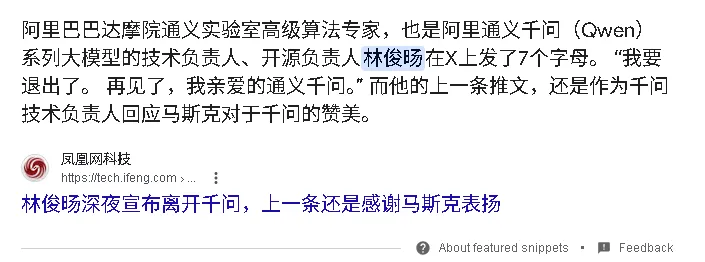 林俊旸怎么“被”离开的事情,咱们可以另一个小号,说说小秘密,怎么这个大号就说技术,所以八卦时间到点了。