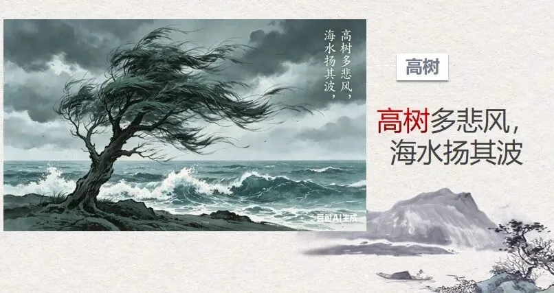 师今天我们这堂课,从一幅AI生成的“高木”图出发,理解了“暗示性”的优美;又在“老树”与“佳木”的矛盾中,领略了“语境”的力量;