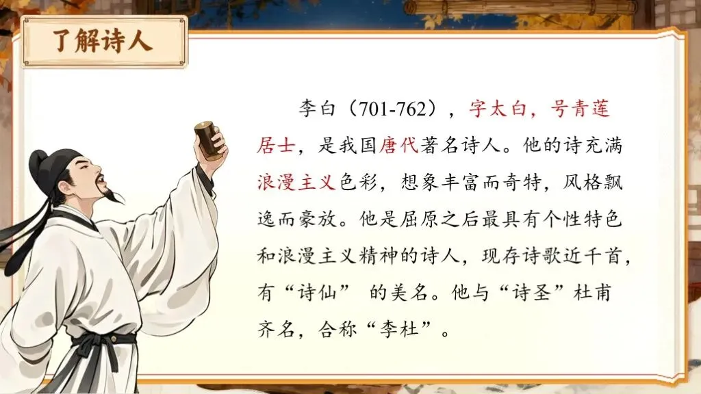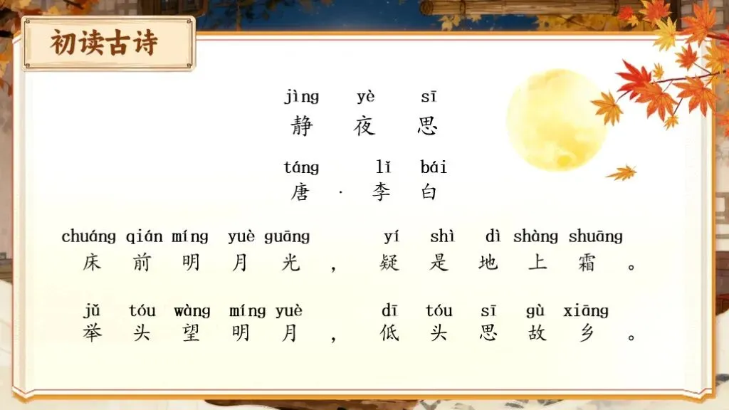��省赛金奖:《静夜思》教赛PPT模板(免费分享)