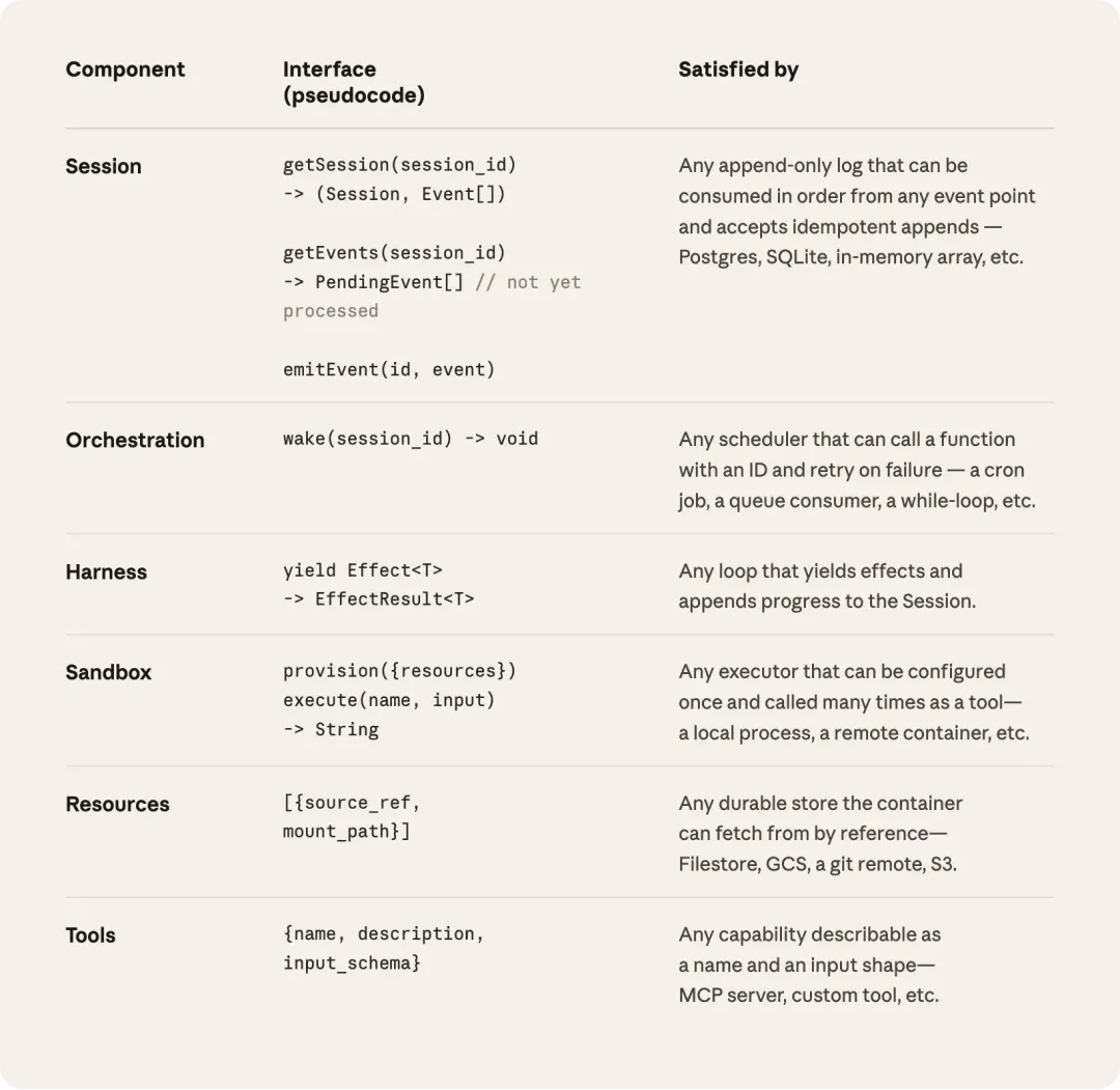 二、Managed Agents 思路:把智能体拆成 3 个标准组件