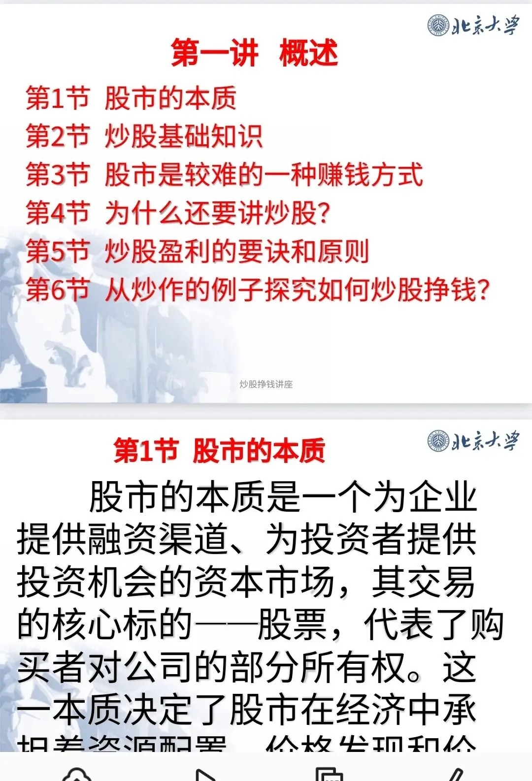 炒股学习资料|股票实战教程|北大投资课程|股市分析方法|新手炒股指南|北大炒股PPT|炒股赚钱技巧|股票入门干货|股市底层逻辑