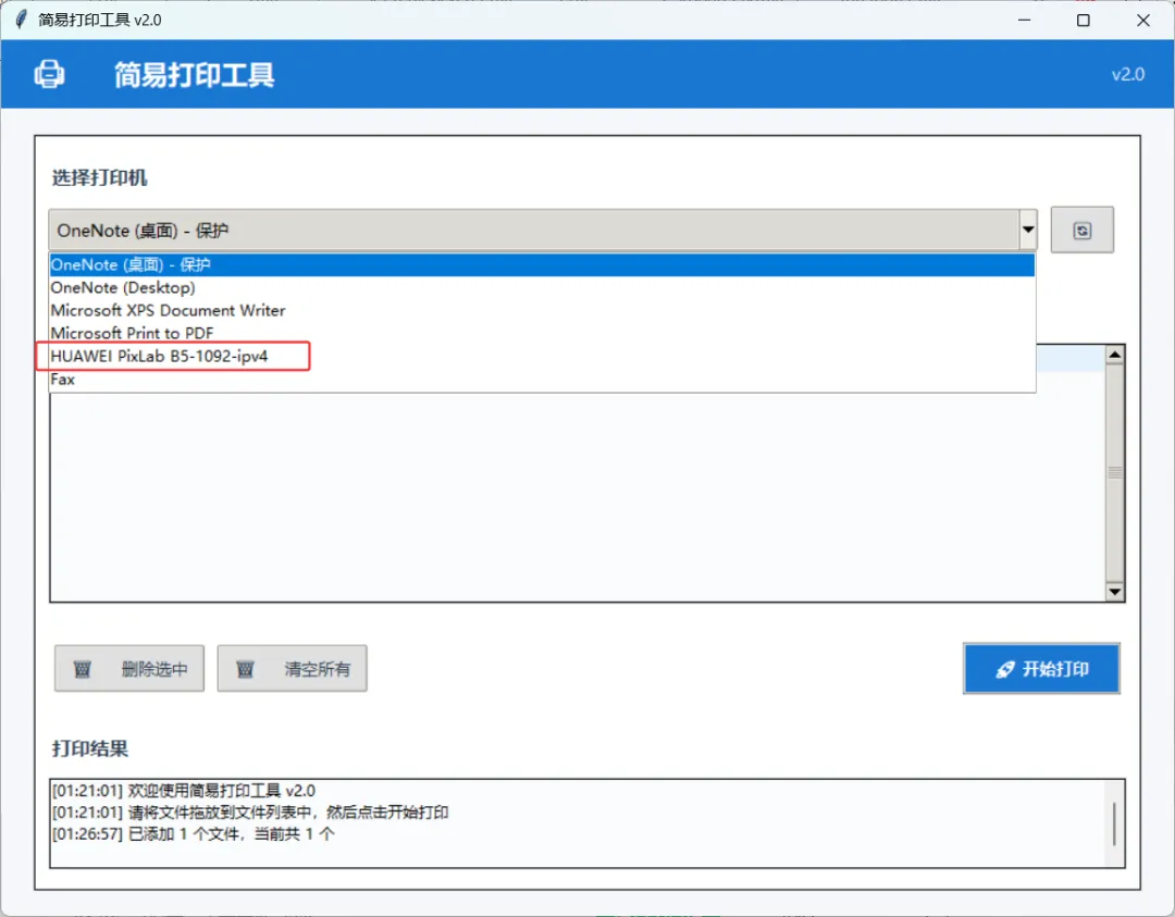 打印机选择:自动检测系统打印机,支持快速切换