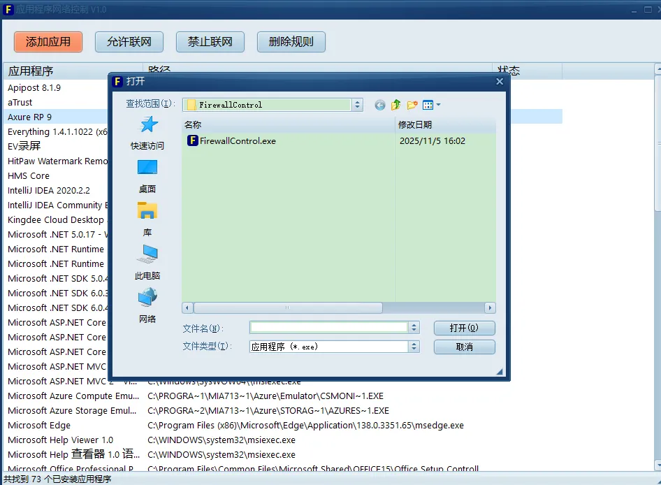 软件里有一个“添加应用”功能,只要找到这类软件的启动程序(通常是一个.exe文件),点击添加,它就会出现在列表中,之后就能像普通软件一样被禁止或允许联网了。