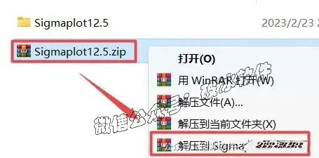 1.选中下载的压缩包,然后鼠标右键选择解压到“SigmaPlot12.5”(列表中没有解压选项点这里)