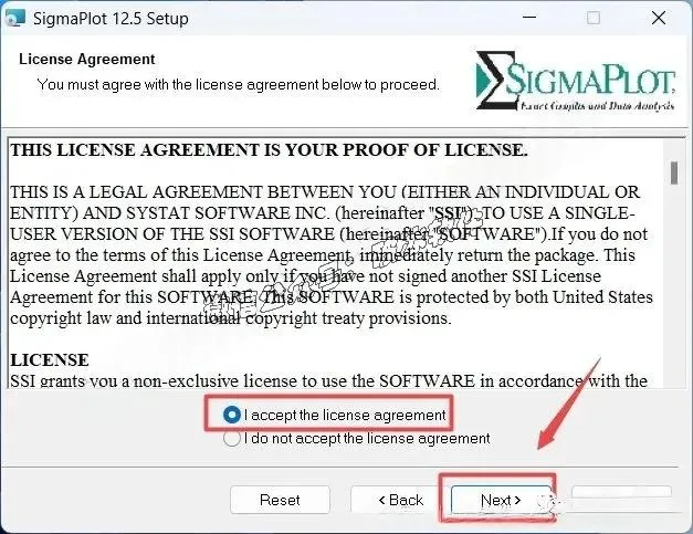 4.选择“I accept the terms of the license agreement”,点击”Next”