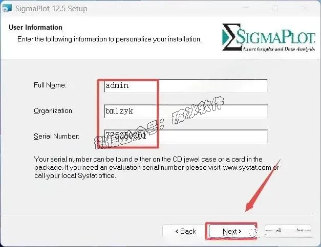5.输入信息及序列号Serial No:775050001,点击”Next”