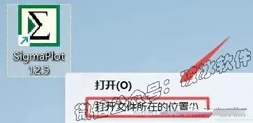 14.在桌面上找到”SigmaPlot 12.5“软件图标,鼠标右键点击“打开文件所在的位置”