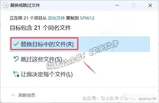 16.点击“替换目标中的文件“