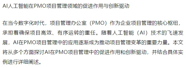 一、AI人工智能在PMO项目管理领域的促进作用与创新驱动