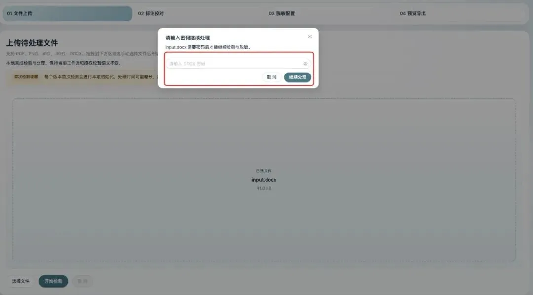 遇到加密的 PDF 或 Word?输入密码即可继续处理,完全不影响工作流。