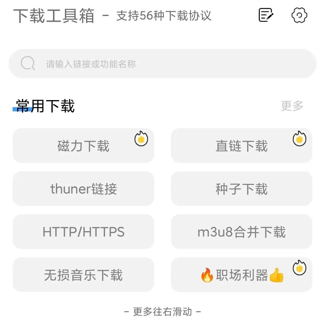 常用下载归类了磁力下载、直链下载、thuner链接、种子下载、HTTP/HTTPS、m3u8合并下载、无损下载、职场利器。