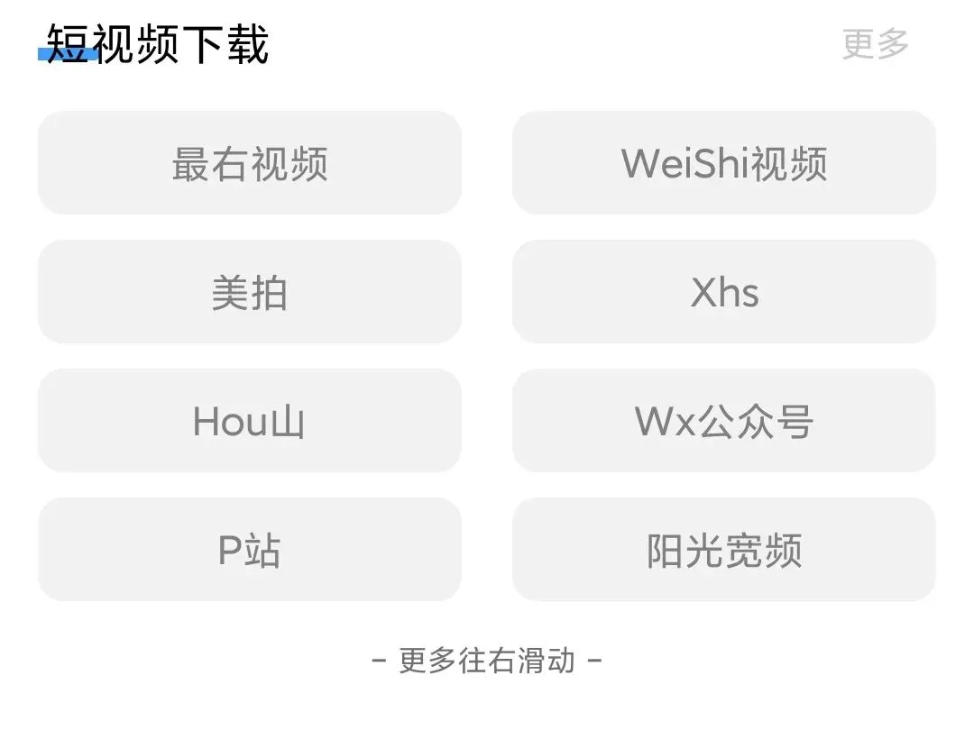 短视频下载非常多的短视频解析工具包含:最右视频、WeiShi视频、美拍、Xhs、Hou山、JY趣头条等。