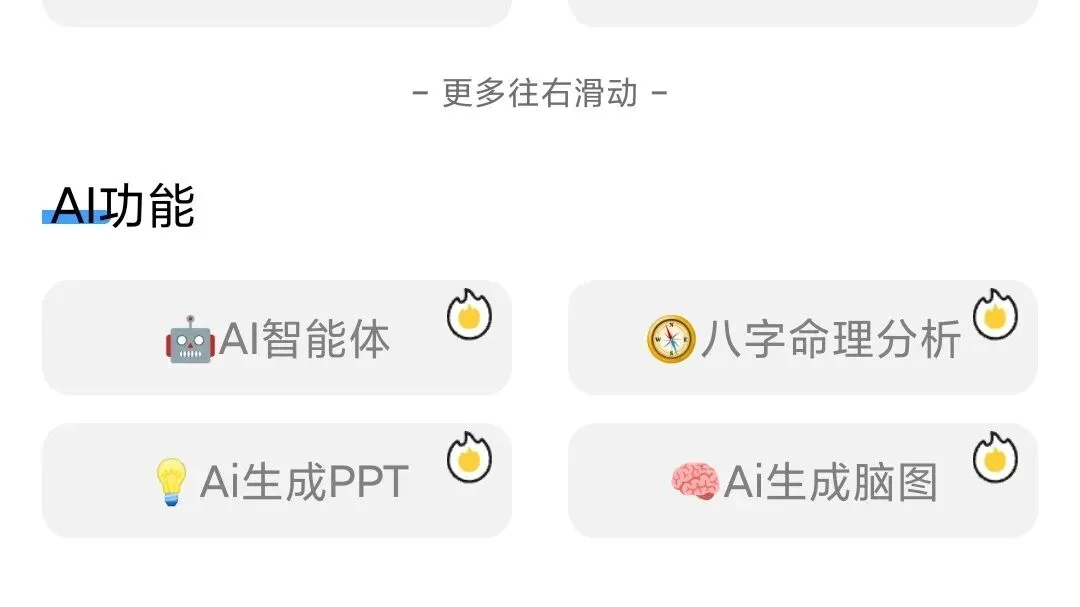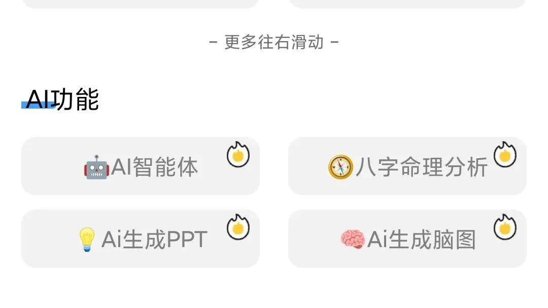 Al功能很牛,支持Al智能体、八字命理分析、Al生成PPT、Al生成脑图。