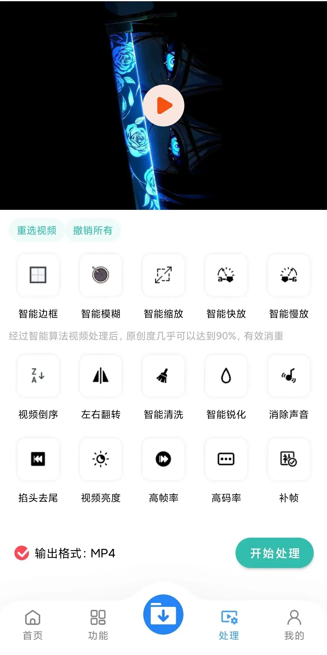 可对下载视频/本地视频进行相应的处理。高码率,高帧率,补帧等