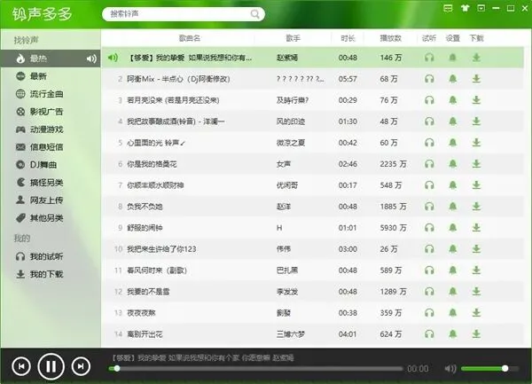 铃声多多电脑版是PC端铃声下载工具,涵盖八大分类、上千种免费铃声,包含流行曲、影视、动漫、搞怪等各类热门资源。