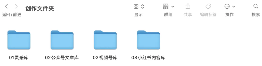 创建不同分类的文件夹,比如我这里创建的是“创作文件夹”、“工作文件夹”和“学习文件夹”(这三个可视作一级目录),在这些文件夹下我又创建了二级目录、三、四、五级目录(大家可以根据自己所需创建目录层级,只要分类清晰即可),如下图5所示: