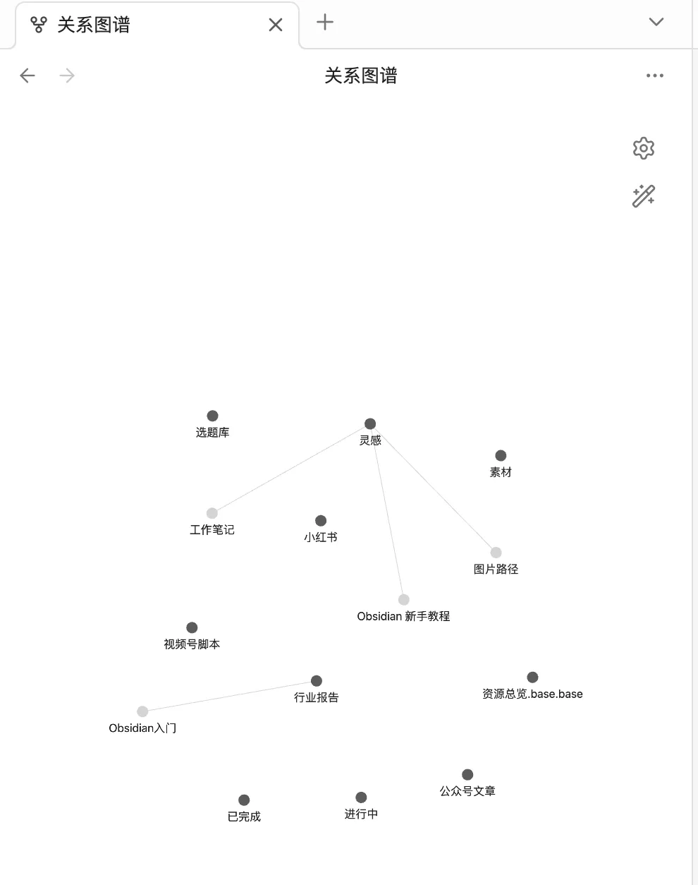5、整个界面的最右侧或者最左侧【功能按钮】区有【笔记关系图谱】/【查看关系图谱】: