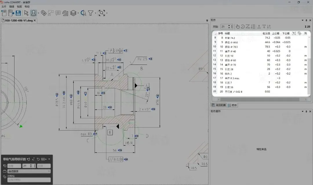 直接导入 Infra CONVERT。软件会自动识别特性、添加气泡,并一键生成带气泡的图纸、检验计划表以及符合 FAI 或 PPAP 标准的报告。这能将原本需要几小时的工作缩短至几分钟。