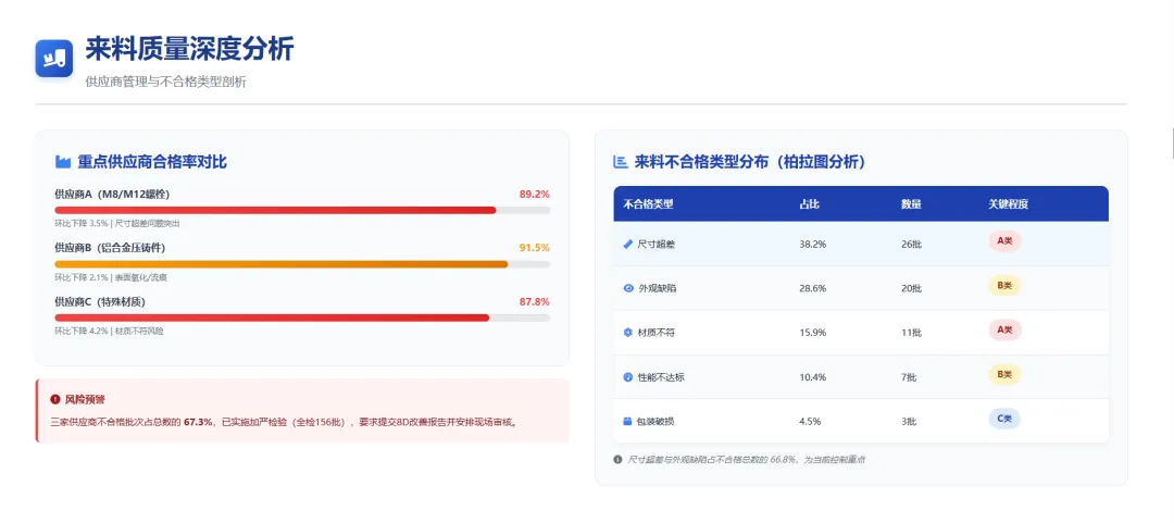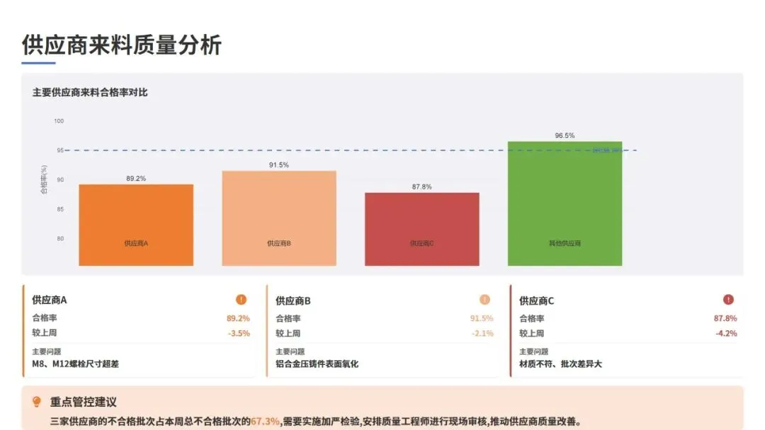 供应商B不良率 | 2.15% | 1.85% | -14.0% | 改善 |