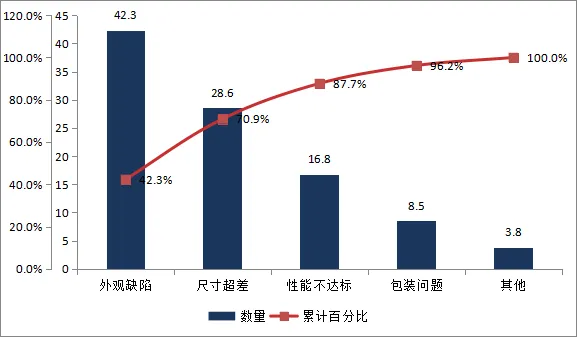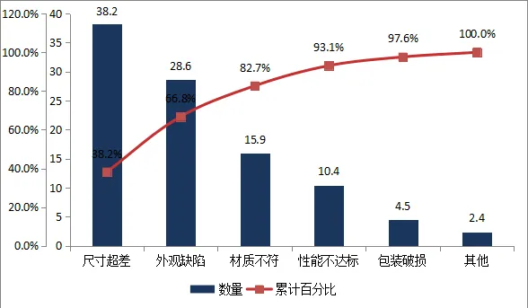成品不合格类型柏拉图分析如下图所示: