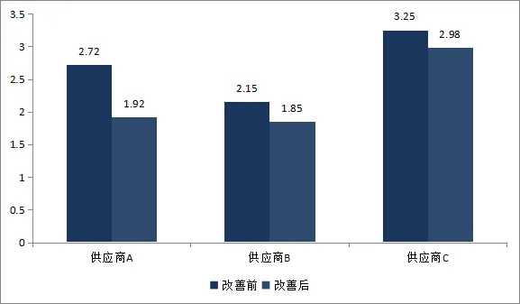 主要供应商来料不良率改善效果对比如下图所示: