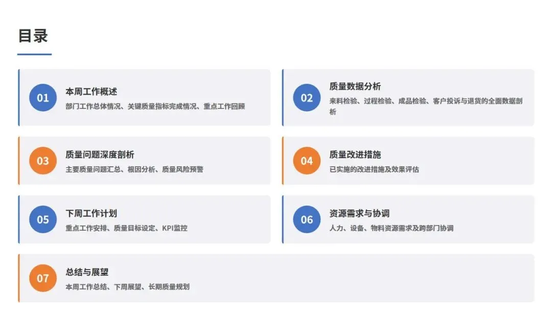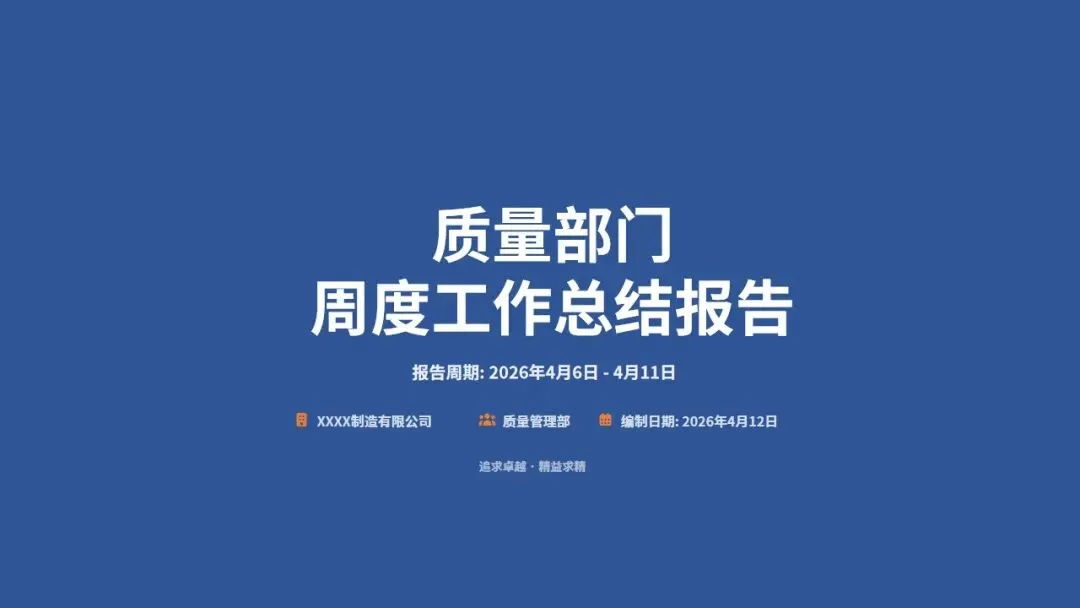 我是质量经理背锅侠,现在由我做上周质量部周度工作总结汇报,本次汇报分为6大模块(PPT见文末):