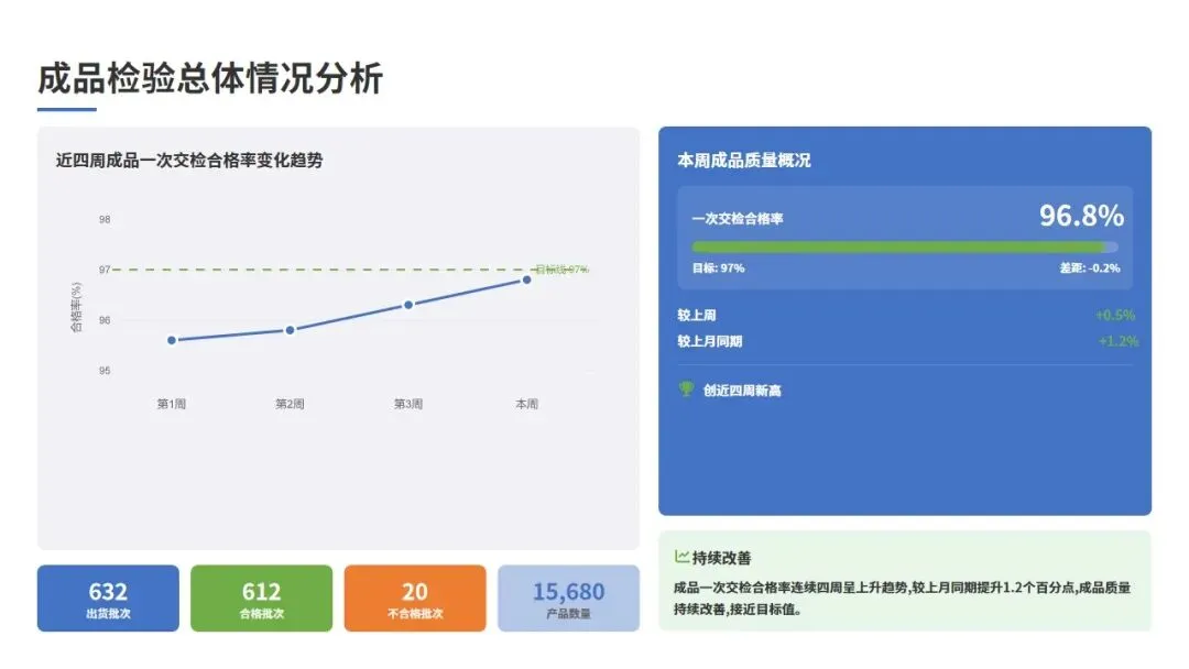 成品合格率 | 96.3% | 96.8% | +0.5% | 持续改善 |