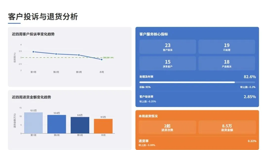 退货金额 | 9.6万 | 8.5万 | -11.5% | 改善 |